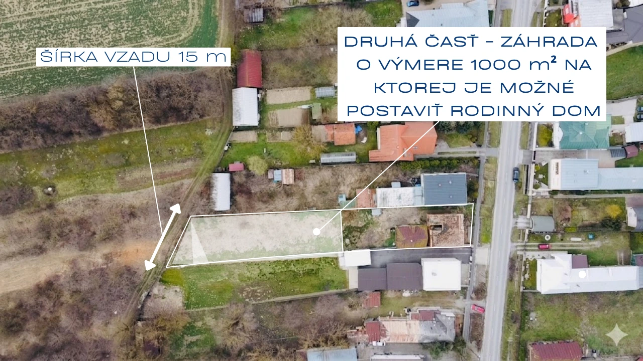 – Rozmery pozemku – cca 15-17 × 100-109 m²
